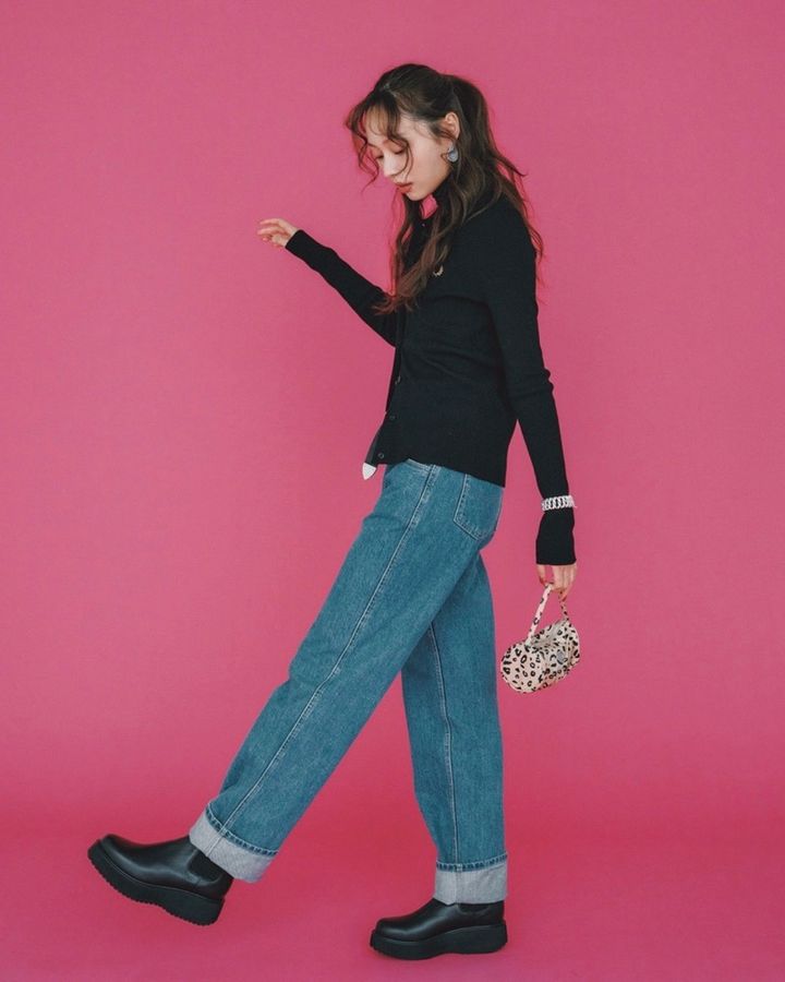 3月20日(金)、今年流行りのポロニットは、まだ1枚だと寒いから中に同じ黒のタートルを仕込んでレイヤードして。トップスがコンパクトな分、太めデニムを合わせればバランスよく着こなせます。裾をロールアップして抜け感もプラス。シルバーのバングルやレオパードのミニバッグでアクセントを添えれば、ベーシックな着こなしもぐっとこなれる「ベーシック×小物」のこなれカジュアルコーデです。