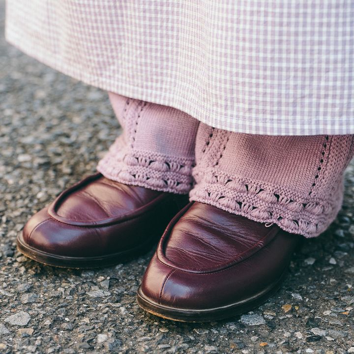 足元はローファーで品よく締めたのがグッド。ボトムスを少しの覗かせて、全体のバランスを取ったのはお見事。