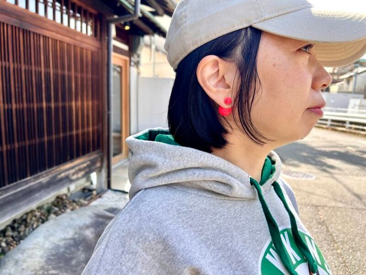 ボーイッシュなカジュアルスタイルだからこそ、存在感のあるピアスひとつが着こなしに華を添える。「スタイリストさんが運営している代々木上原のカフェで、友人とおそろで買いました。韓国で仕入れたそうです」。