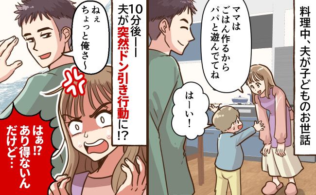 お昼ごはんを作っていたある日は、料理をしながら子どもの相手をするのは危険なので、私は子どもに「ごはんができるまでお父さんと遊んでてね」と言って、夫に子どものお世話を任せました。10分ほど経つとなんと「ちょっとコンビニ行ってくるわ」と出かけて行ってしまったのです……。