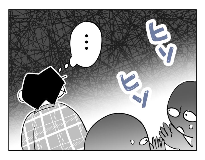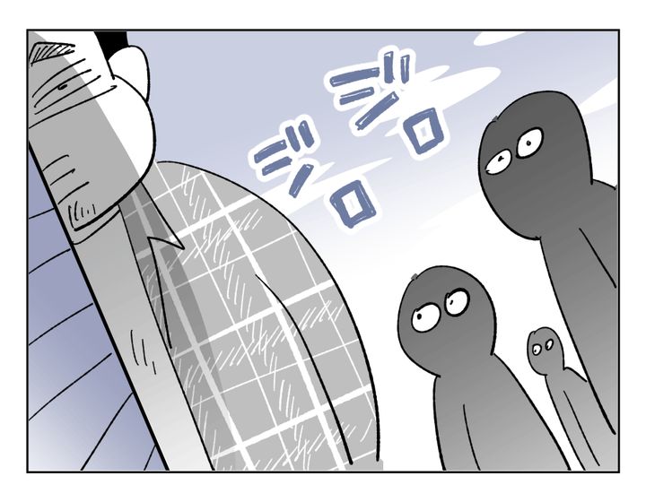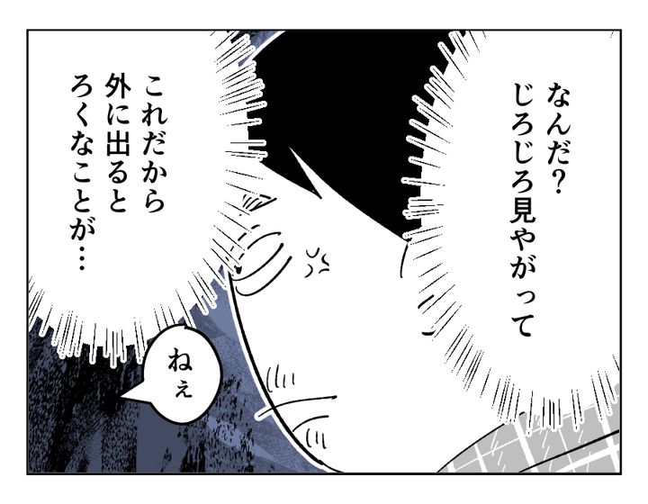 思考回路がヤバいお義兄さんですが、さすがに周囲の視線には気づいたようです。「事情があるから」「親族だから」と心のなかで自分を正当化しようとしますが、焦りからイライラした表情に……。意に反して外見の怪しさがますます増しています。実は内弁慶で小心者なのかもしれませんね。