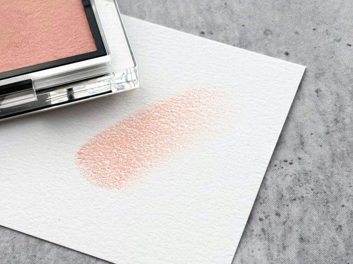 手持ちのチークとけんか 喧嘩せずにうまく調和する、緩衝材的なカラーです。ニュアンシーに発色する扱いやすさも備えているので、チークレス派も気軽にトライしてほしい。きっとチークへの遊び心が養われますよ。