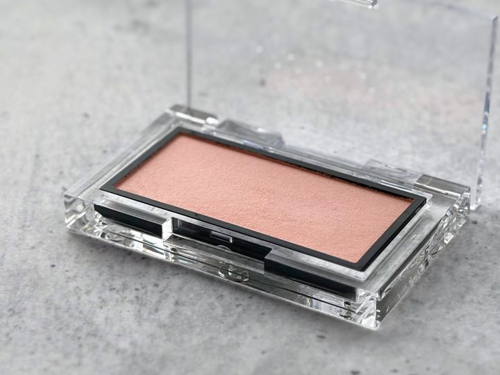 ベースメイクのツヤを妨げることなく、それでいて気になる毛穴や凹凸をブラーリングする粉質も優秀です。しっとり、クリーミーなタッチでドライな感触はゼロ。チークブラシにとる時に粉が散ってパケが汚れてしまう、なんていうプチストレスも解消されました。