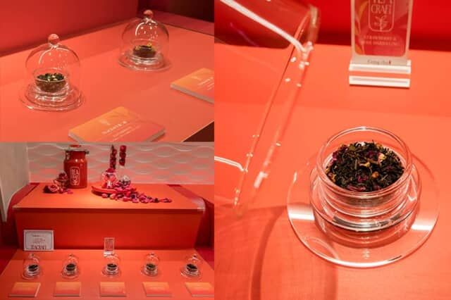 お茶のおいしさを五感で体感できるブースも登場。シリーズ第一弾の「ストロベリー&ローズ ダージリン」の茶葉のほか、これから発売予定の茶葉も展示。それぞれの香りを確かめられます。