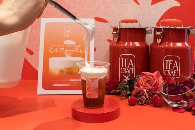 TEACRAFT 原宿店限定で有人レジでミルフォティーを注文すると、無料でミルクフォームを最大3杯まで追加できます。 ※先着順、数量限定 ※「ミルフォーだい」を注文するとその他のトッピングの追加はできません