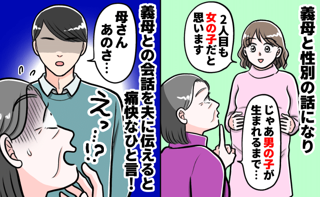 3. 「生まれるまで産むんだよ!」第2子を妊娠中、男の子を熱望する義母。すると、夫が痛快なひと言!