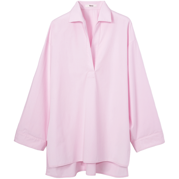 「パッと目を惹く鮮やかなピンクカラーも、オーバーサイズなら甘くならない」シャツ¥25,300(ヴェニカ/Souple)