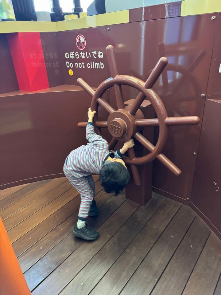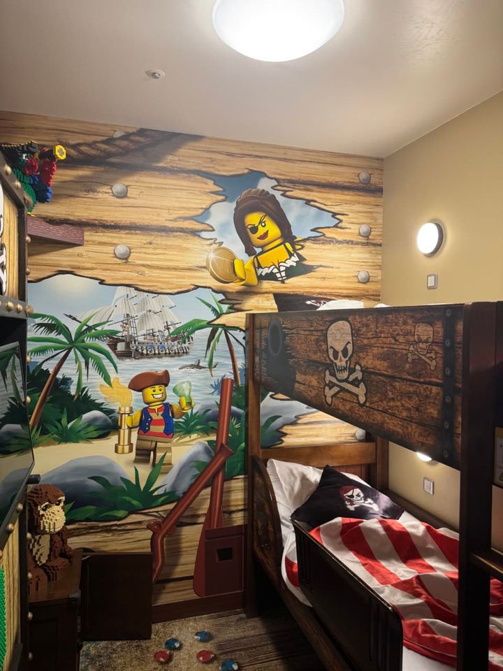 お部屋は「パイレーツ」の他にも、「ニンジャゴー」「アドベンチャー」「キングダム」、女のコ好みの「フレンズ」があります。クラスもスタンダード、プレミアム、スイートとあって、今回はプレミアムにしたのですが、いっそスイートにすればよかったな~と。というのも、ホテル内には屋内プールがあるのですが、スイートだとプールの使用が確約されるとのこと(知らなかった……!)。プールは完全予約制で、12時にWEBで一斉に予約するシステムなのですが、これがなかなか取れない! 我が家も例に漏れず、敗北……。水着も持参していたし、プールもあるよと伝えてしまっていたので、最後まで「プール行きたい!」となっていた息子。そんなに大きく金額が変わるわけでもないので、またの機会があれば、今度はスイートに泊まろうと心に誓ったのでした。