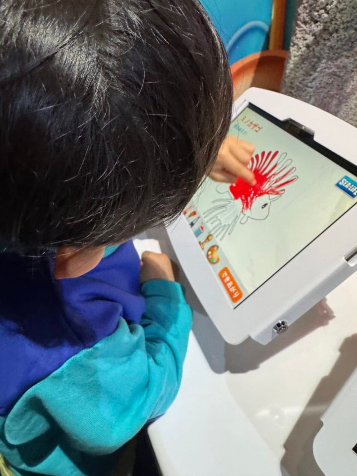 パッドで色を塗った海の生き物、それがそのまま画面に映し出されるやつ。ここで30分以上楽しんだ俺。なかなか離れられなかった(笑)
