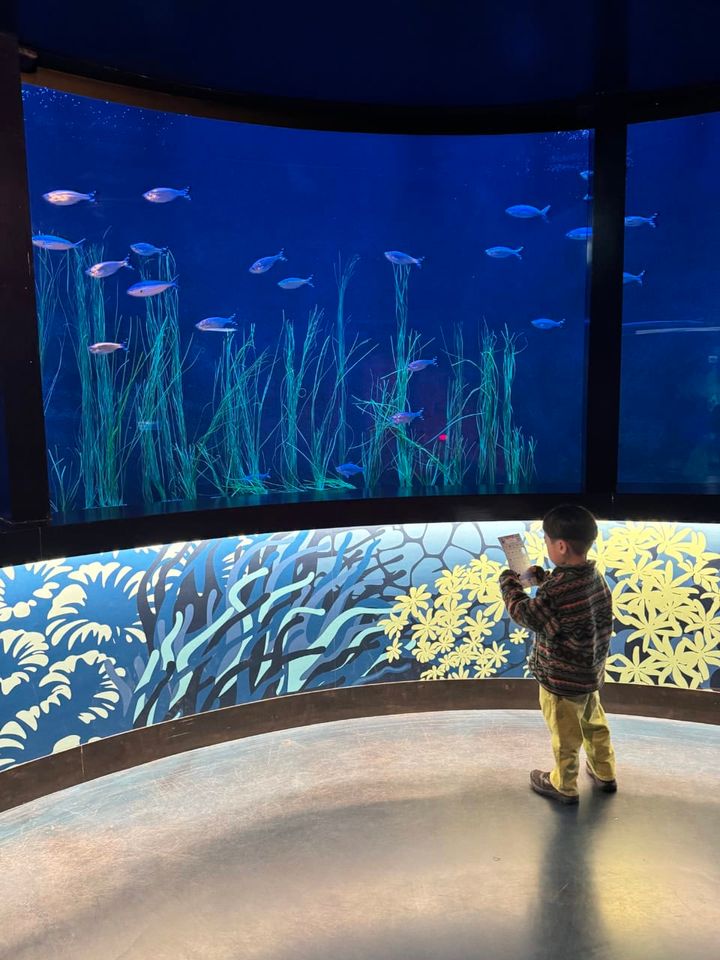 ちょうど「あつまれ どうぶつの森」とコラボをした企画が実施されていて、展示されている生き物を探す「生きもの探しカード」も別途300円でゲット。ビンゴカードを使って、最終的に展示されていない生き物が何かを導き出すというもの。正解するとゴール地点で限定ステッカーがもらえます。これが、思いのほか5歳の息子にヒット。「あ、カサゴ。ゲット!」などと、まるでポケモンをゲットするかのように夢中でチェックしていました。こちらのコラボ企画は2026年の5月11日までだそうです。