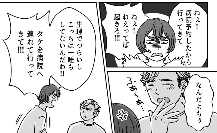 病院の予約をしてほしかったのに、旦那は起きないので結局私がすることに。朝イチでの予約をして、起きる気配のない旦那の布団を引っぺがして叩き起こしました。