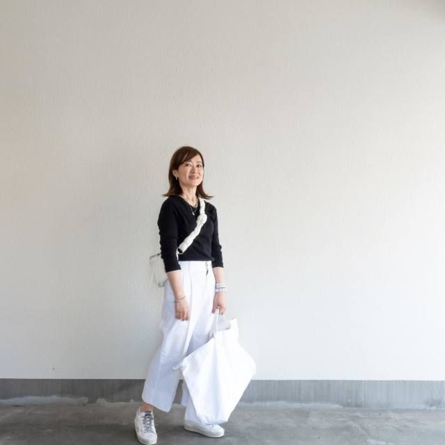 【50代・春の旅行コーデ6】ボトムは「ワイドパンツ」