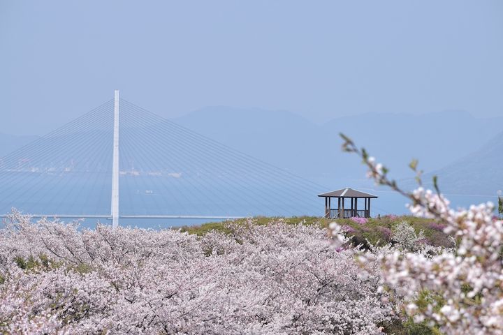 瀬戸内海を見渡せる公園に咲き誇る約2,000本の桜