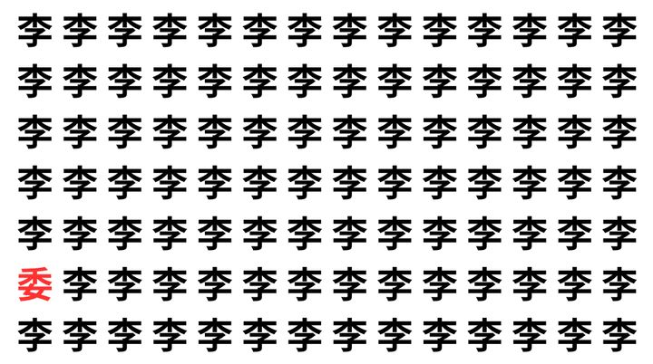 たくさんの「李」の中に、よく似た別の漢字が1文字だけ隠れています。