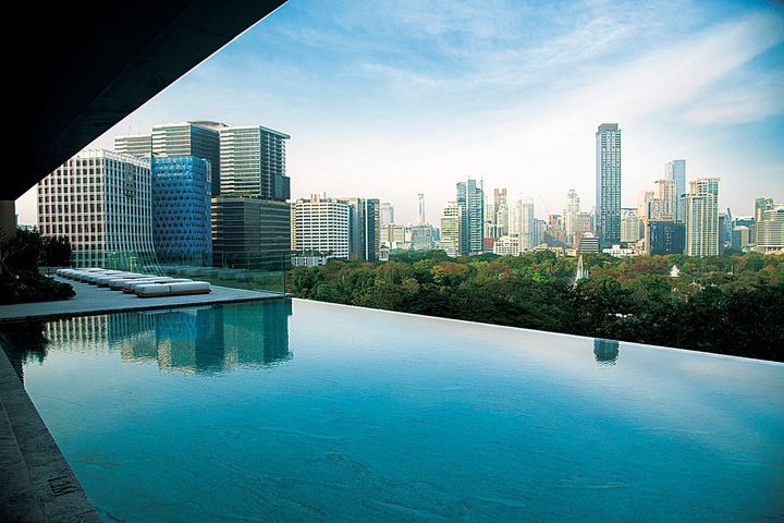 新設の「スパイア・ルーフトップ・バー」もホテルの特別なロケーションを生かしたデザインで、公園越しに夕刻の街を見渡せます。同様にインフィニティプールからも、他では見ることができないバンコクの景色を楽しむことができます。