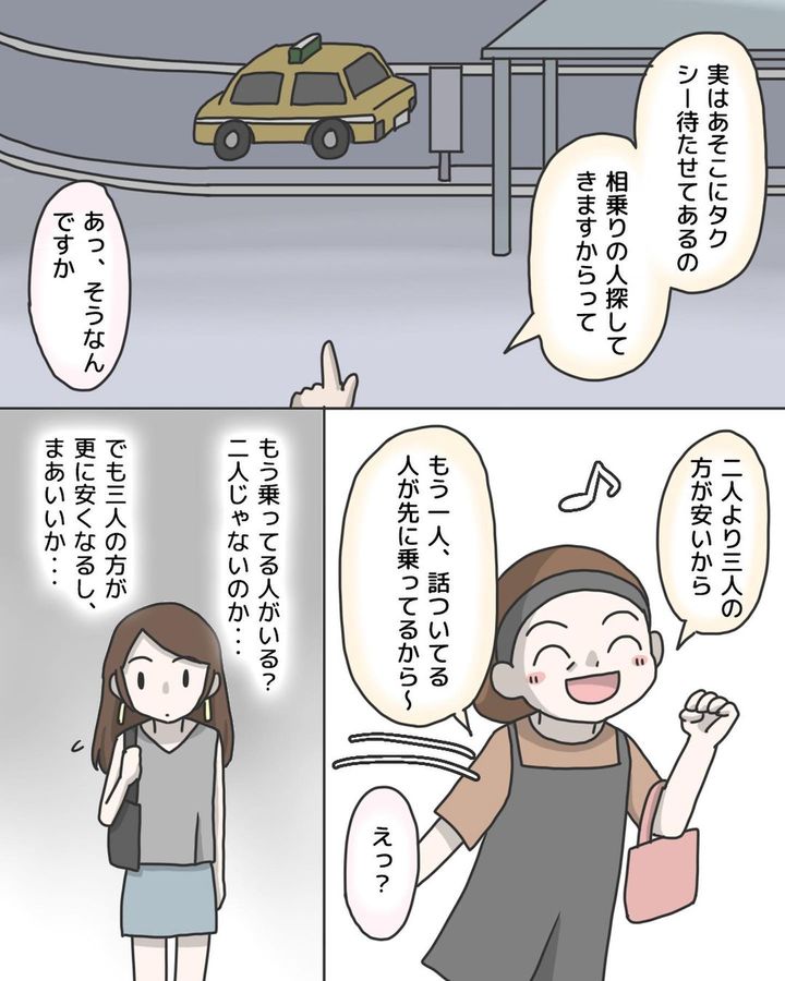2. タクシー代を節約できると喜んでいたら…見知らぬ男性との相乗りで恐怖の一夜が始まった【漫画】