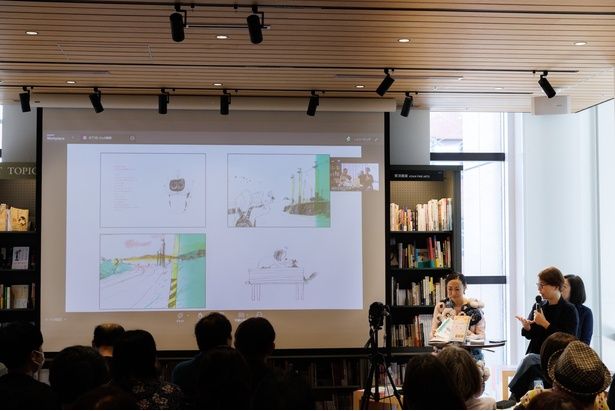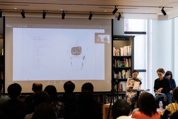 イベントではまず、林小杯さんと一青窈さんによる読み聞かせが行われた。会場のスクリーンに絵本のページが映し出され、林さんが中国語で、一青さんが日本語で一節ずつ交互に朗読していく。すると、この作品に紡がれた言葉の、繰り返しや響きが生む心地よいリズムに、自然と引き込まれてしまう。そのリズムに身をゆだねていると、中国語がわからなくても胸がぎゅっと締め付けられ、日本語でその意味を知ることで、言葉はいっそう深く胸に染み渡る。絵本の中の〈私〉とビビの日々を追ううちに、気づけば、自分にとっての大切な存在に思いを馳せずにはいられなくなる。会場では目頭を押さえる人の姿も少なくなかった。