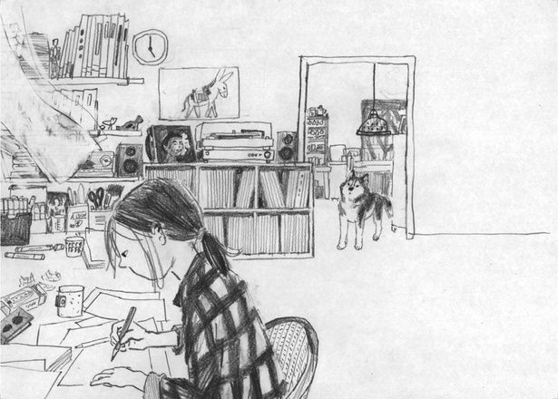 ビビの身だしなみのために使っていたブラシ、ワクチン接種の証明書、お椀。犬にまつわるアイテムはもちろん、The BeatlesやLed Zeppelinのレコードが飾られた部屋の様子まで、ここに描かれているのは、〈私〉の日常そのものだ。