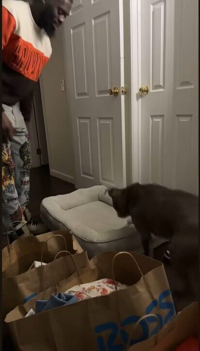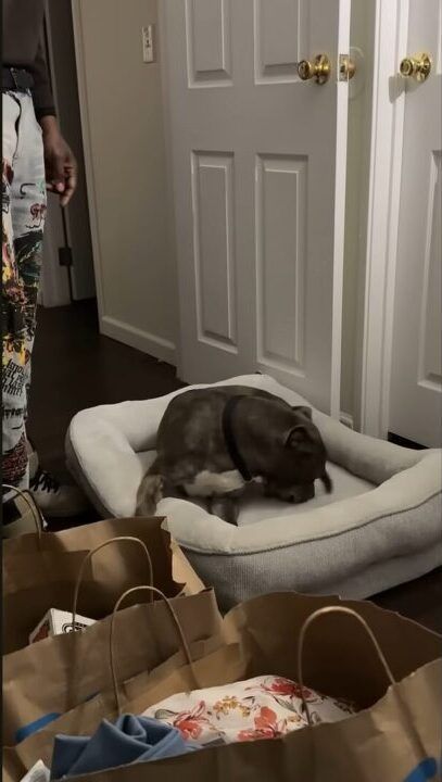 たくさん買い物をしてきた飼い主さん。 その中には、愛犬用の新しいベッドもありました。