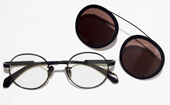 「1本で、めがねとサングラス両方使えるのが便利です」(大沼さん)。めがねの上から、サングラスのフレームをカチッとはめるだけ。オーバルのフレームがおしゃれ感をアップ。