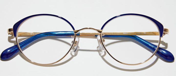 「小ぶりのサイズ感とオーバル型で、誰にも似合いそう」(ミモザ会)。フロントの七宝が目もとを彩るメタルフレーム。