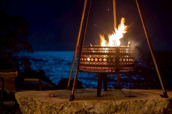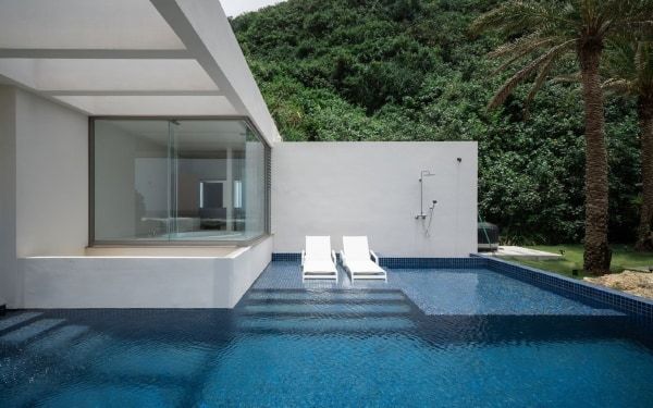 施設内には、地下から汲み上げた、ミネラル豊富な天然湧き水100%のプールも用意。客室には最新の映像・音響設備を完備されていますが、多くのゲストは琉球石灰岩の焚き火台で、不規則に揺らぐ炎(1/fゆらぎ)に癒されているといいます。