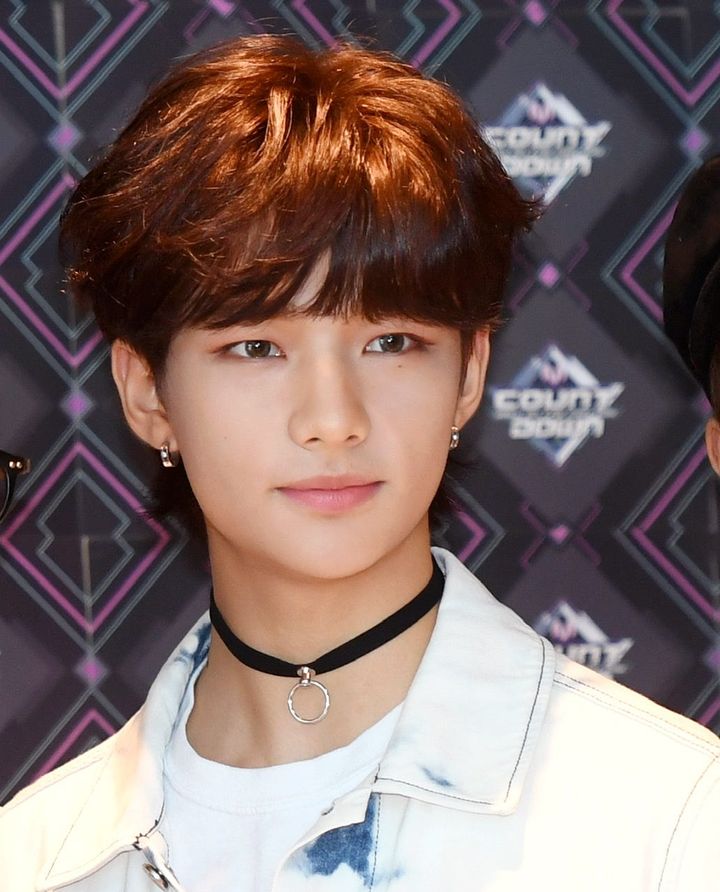 明るいブラウンヘアに大胆イメチェン! 髪色を明るくすることで、顔色もトーンアップし一気に垢抜けたヒョンジン。目元のホクロ&しっかり保湿された血色感のあるリップが可愛さを後押し。