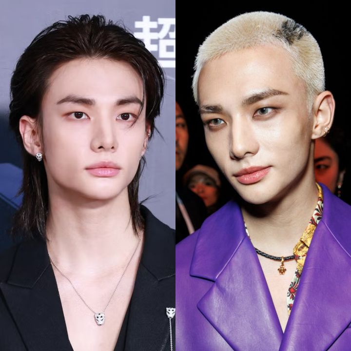 突然、金髪坊主ヘアに大胆イメチェン! 坊主ヘアをここまでモードに、自分のものにできるのは、やはりヒョンジンだけ。
