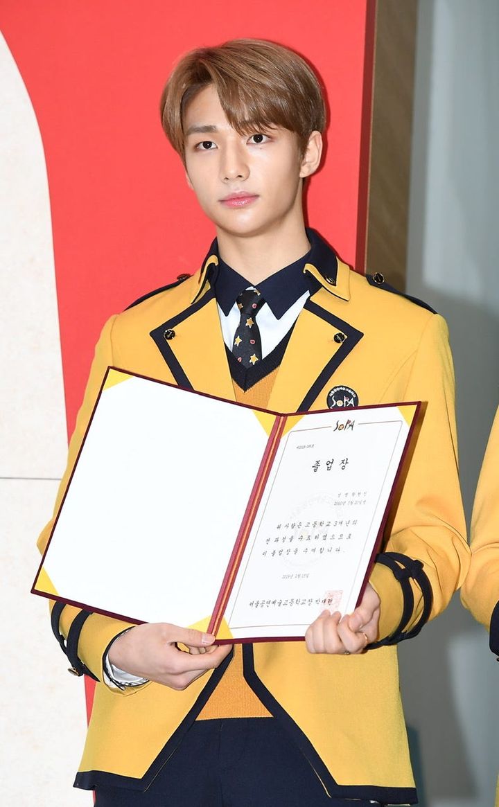 芸能人の卵や現役アイドルが通うソウル公演芸術高校に通っていたヒョンジンは、おなじみの黄色の制服姿をファンにお披露目。学生らしい前髪重めヘアに、ノーメイクで舌をペロッと出したあざとい表情がキュート♡