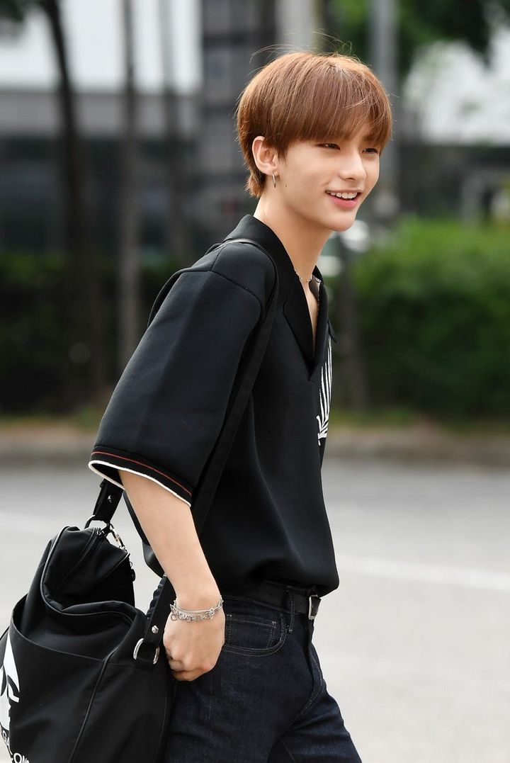 音楽番組「ミュージックバンク」に出勤するヘアセット前のヒョンジンをキャッチ! 舞台上でのパワフルなパフォーマンスと、オフ時の爽やかな表情のギャップが魅力♡