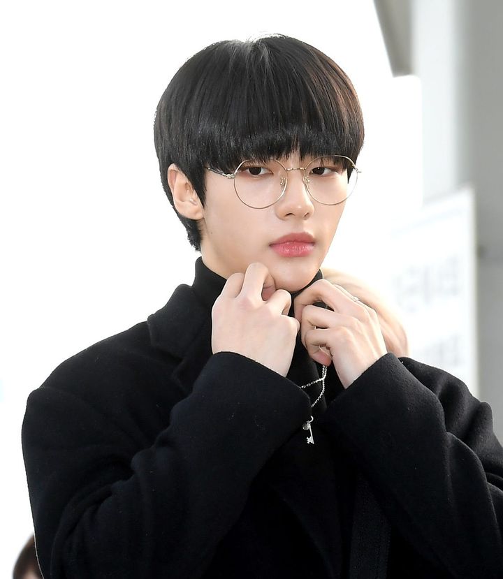 ベトナムで開催された「2019アジアアーティストアワード」に向けて出国するヒョンジンは、黒髪マッシュに丸メガネ姿で登場! 透明感あふれるピュアなビジュアルが可愛すぎるとファンも大興奮♡