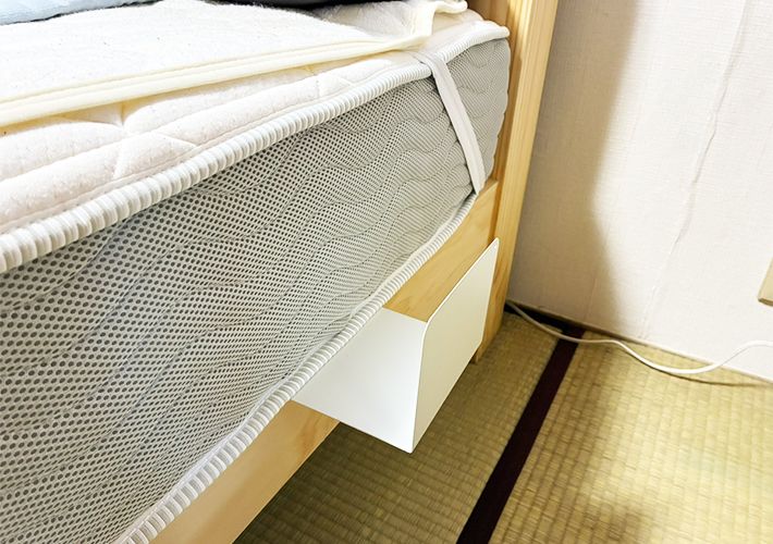 2. 『ブックエンド』をマットレスの下に挟むだけ! 即席『簡易棚』に「これで直置き卒業!」