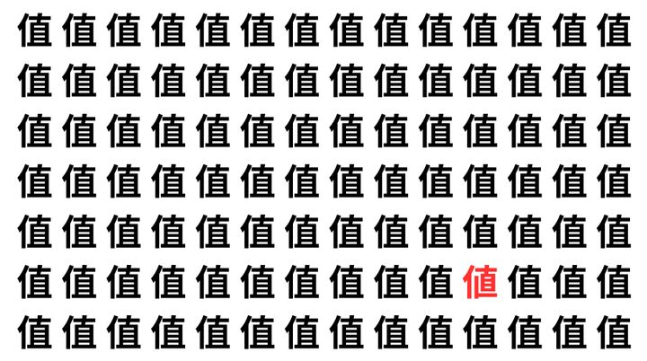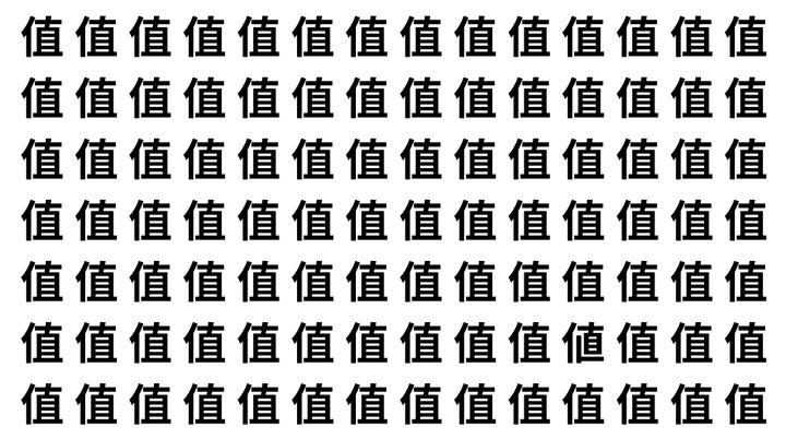 たくさんの「值」の中に、よく似た別の漢字が1文字だけ隠れています。