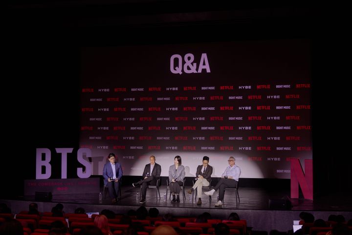 ライブ前日に行われたメディアブリーフィングには、ブランドン・リグNetflix ノンフィクションシリーズ & 11:20 AMSports部門VP、キム・ヒョンジョンBig HitミュージックVP、ユ・ドンジュHYBE APAC地域代表、ギャレット・イングリッシュエグゼクティブ・プロデューサーが出席。