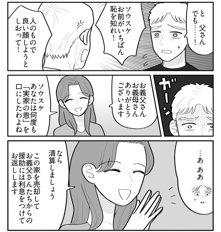 <義妹にマンション譲れ?>金銭も夫婦関係も清算…「恥を知れ!」叱ってくれた義両親【まんが】