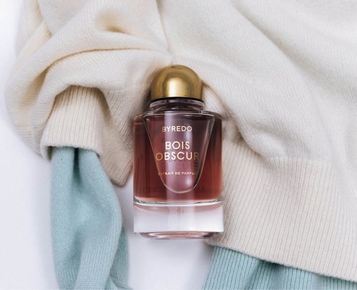 サフランとジャスミンが濃厚なウードと重なって、深くもモダンなアコードに。ナイト ヴェールズ パフューム エクストラクト ボワ オブスキュール 70mL ¥59,070(バイレード ジャパン)、ニット※参考商品(スローン/ザ ショップ スローン 新静岡セノバ店)