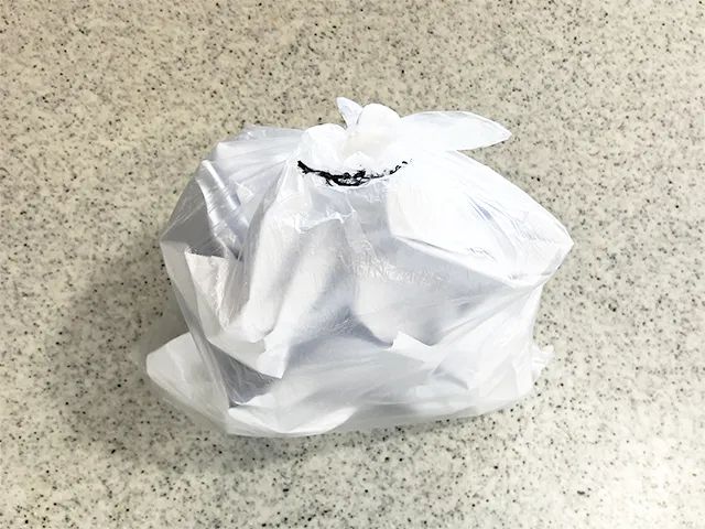 大きなゴミ袋以外に、生ゴミを入れるためのポリ袋や食品の空き袋も、切り込みを入れることで結びやすくすることができます。