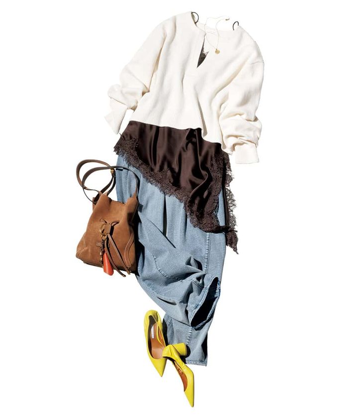 【レース】ニット×デニムの地味見え回避に!