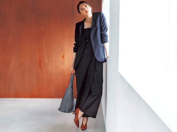 パンプス¥135,300(セルジオ ロッシ/セルジオ ロッシ ジャパン カスタマーサービス)ジャケット¥66,000オールインワン¥99,000(ともにザ サードマガジン/サードマガジン)バッグ¥198,000(J&M デヴィッドソン/J&M デヴィッドソン カスタマーセンター)ピアス¥26,400(ブランイリス/ブランイリス トーキョー)チョーカー¥40,700〈ソコ〉ネックレス¥14,300〈エムシー・スタジオ〉(ともにズットホリック)リング[右手]¥3,520(ヘンカ/ロードス)