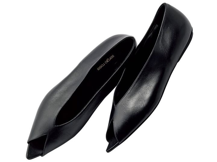 スタイルアップ効果も期待できるシャープなフォルム。シューズ¥119,900(セルジオ ロッシ/セルジオ ロッシ ジャパン カスタマーサービス)
