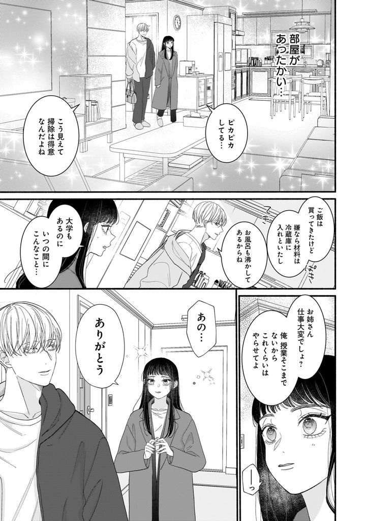 警戒心マックスで始めた同棲生活でしたが、疲れて帰ってきたら部屋が片付き、お風呂も沸いている最高の状況……。髪を乾かしてもらえるというすてきなおもてなしまでありますが、異性慣れしていない杏にとっては大事件! うまく乗り越えられるのでしょうか?