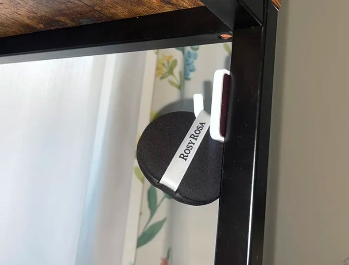 100均のマグネットフックを金属に貼りつけて… メイクパフの置き場問題を解決した結果