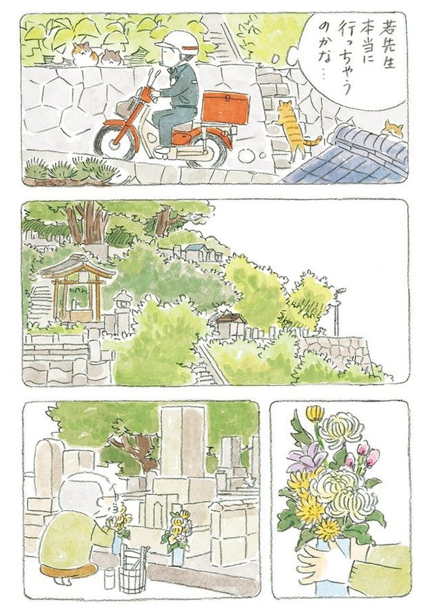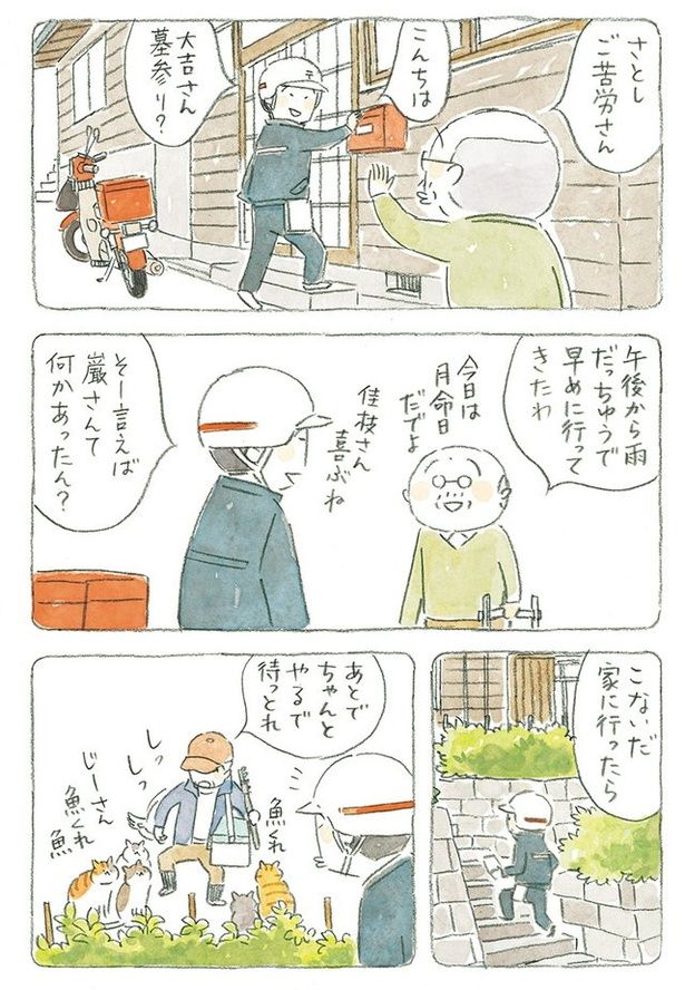 猫と老人だらけの島で働く郵便配達員。一人ひとりと交流しながら手紙を配達/ねことじいちゃん5(22)