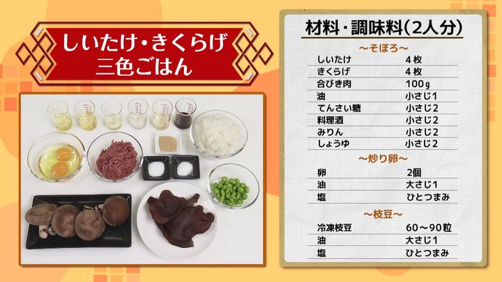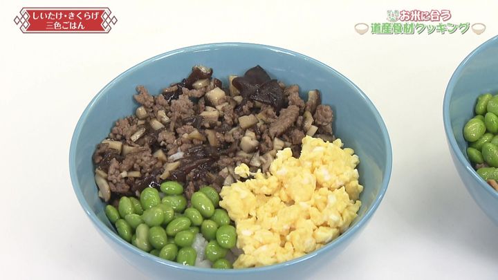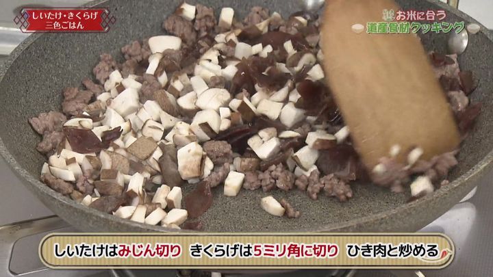 しいたけ・きくらげ三色ごはん