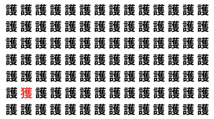 たくさんの「護」の中に、よく似た別の漢字が1文字だけ隠れています。