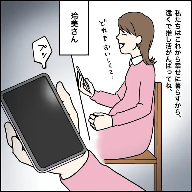 玲美さん、今日も元気に推し活を楽しんでいますか?私たちはこれから幸せに暮らすから、どうか私たちの目に触れないところで、これからもシュン君を推し続けてくださいね。あなたがいないほうが、私も太一も、そして義家族も幸せに過ごせるから。