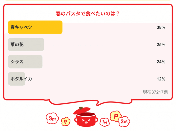 ・「春のパスタで食べたいのは?」の結果は…