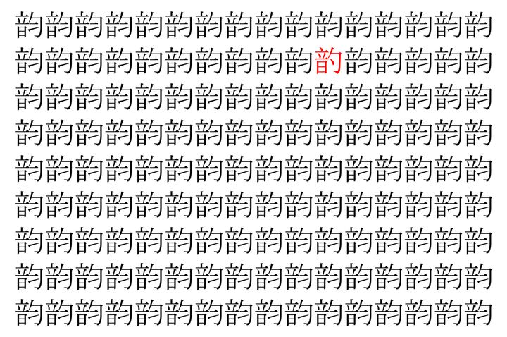 【脳トレ】「韵」の中に紛れて1つ違う文字がある!?あなたは何秒で探し出せるかな??【違う文字を探せ!】