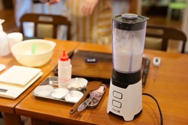 材料をミキサーにかけたり、ヘラで混ぜたりしながら生地を作っていきます。