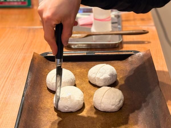 成形後は、パンの表面にクープ(切り込み)を入れます。
